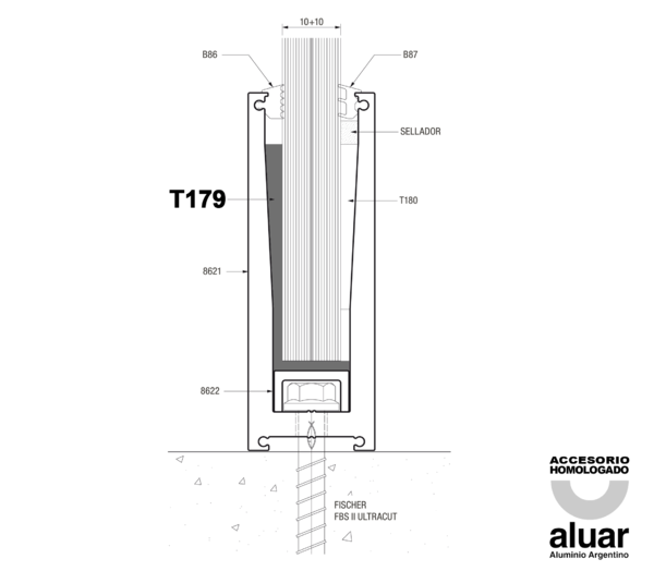 "L" apoyo vidrio lado exteriorALUAR: A40 CRISTAL (Baranda Autoportante)